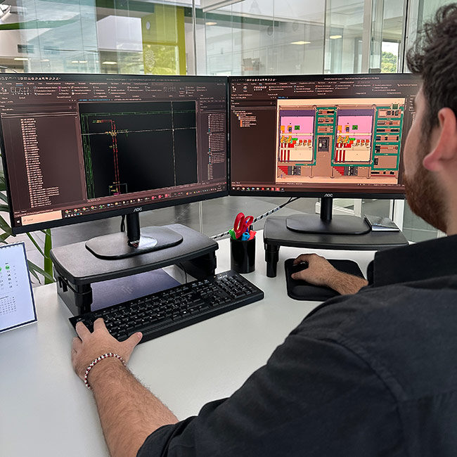 - Progettazione e realizzazione di sistemi hardware avanzati: dalla progettazione di quadri elettrici alla scelta dei componenti elettronici, il nostro team sviluppa soluzioni hardware pensate per ottimizzare il massimo delle performance, dell’affidabilità e della sicurezza;